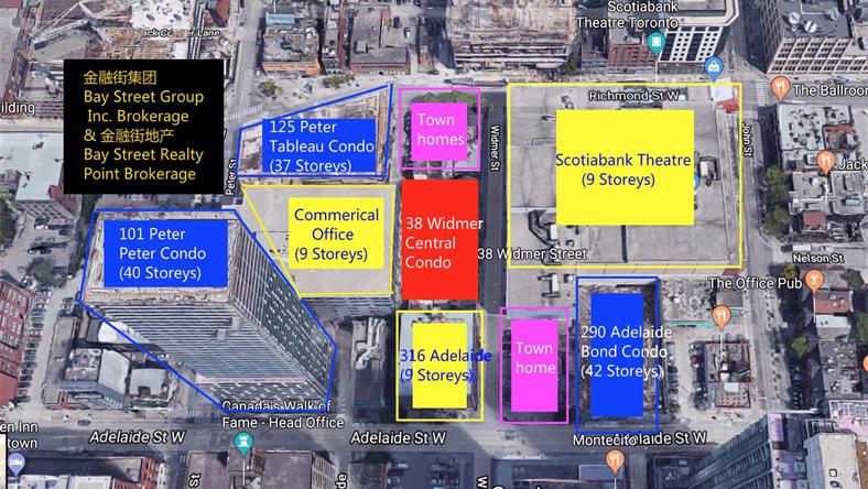 Central楼盘位于市中心的38 Widmer St.(Entertainment/Finanical District )。一个让你尽享精英与时尚人生交融的完美舞台。该社区非常成熟和繁华,已经成为游客必来观光之地之一。