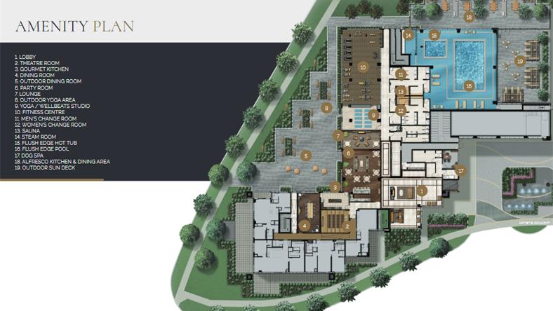 大楼配有健身房、室内外游泳池、图书馆、自习室、party room、台球厅、电影厅、室外BBQ等基础设施一应俱全。