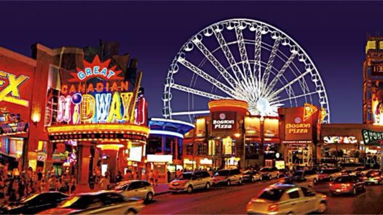 尼亚加拉大瀑布横跨加拿大和美国的边境,是世界三大跨国瀑布之一。大瀑布由三个瀑布组成,其中主瀑布“马蹄瀑布”状如马蹄,占瀑布总水量的94%,位于加拿大境内。由于大瀑布正面面向加拿大,所以游客为了一睹瀑布的真容,便全部涌入加拿大的尼亚加拉地区。当地市政府借力于得天独厚的自然景观,大力发展旅游业,1996年尼亚加拉第一所赌场尼亚加拉赌场落成,因为在加拿大赌博所得不必缴纳所得税,尼亚加拉赌场每年招揽大量游客。2004年一所更豪华的瀑布景观赌场在邻近“马蹄瀑布”的山丘上落成,尼亚加拉地区也逐步发展成了加拿大的“拉斯维加斯”。