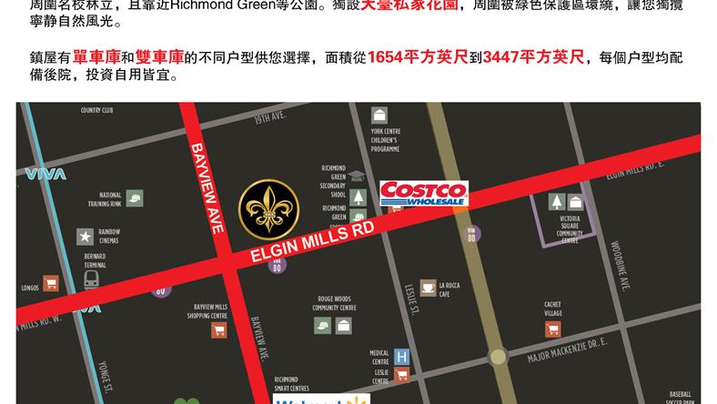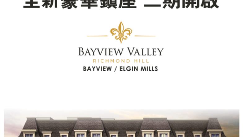 Bayview Valley位于列治文山位市尊貴地段Bayview / Elgin Mills,是由著名的开发商Kalexia Developments 开发的典雅豪华镇屋。建筑以浪漫风格立意,形成建筑在视觉上的统一;简约与华丽的强烈的对比,更加丰富了视觉效果。