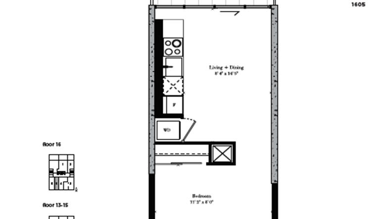 公寓采用了标准9尺层高的设计,保障了空间感,搭配欧式厨房附带高档石料台面、不锈钢电器、Gas天然气燃气炉灶、全屋Engineered Hardwood地板、拓展式阳台。Loft现代风格内部装修,最大程度的迎合了都市白领和学生的审美。