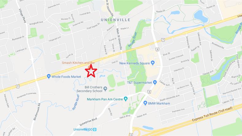 Plaza位于大多地区万锦如今炙手可热的渔人村附近,具体位置在Hwy 7沿线,Warden Ave和Kennedy Rd中间,距离渔人村所在的Main St南口仅几步之遥。Plaza交通位置极为优越,周边人口、车流量巨大,发展潜力极高。