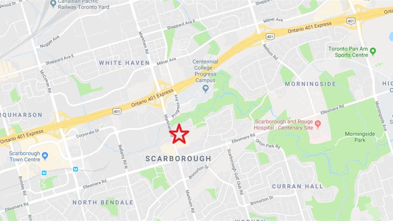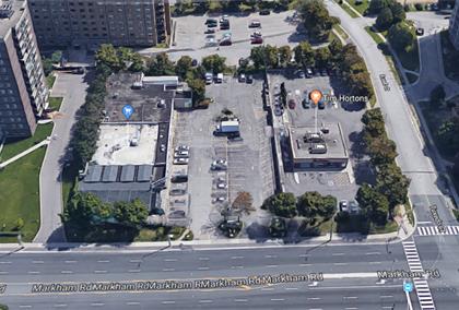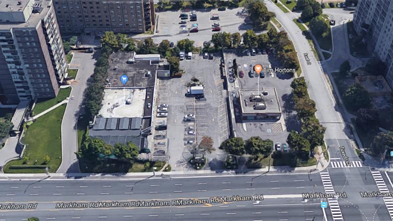 该开发用地位于多伦多世嘉堡Markham Rd,现作为Plaza出租使用。近Hwy 401、Ellesmere Rd等主要干道。周边人口稠密,大型公司、学校、餐厅、商场等不胜枚举,距离目前发展迅速的Scarborough Town Centre世嘉堡城市中心仅两个街口距离。