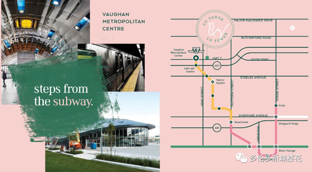 EXPO City项目总体规划由5栋大厦,多家零售店,以及一个20英亩的公园和配套设施组成。CG Tower,不仅双向公园环绕,一楼还设有高档休闲咖啡厅,二楼是交流中心。相较于其他低层用作办公室或其他零售的项目,CG Tower有着更为稳定和安全的楼内环境。按照旺市市长Hon. Maurizio的远景规划,VMC中心区域,将在442英亩土地范围内,包含150万英尺的商业办公区/展览馆,75万英尺的商铺,12000户公寓居民和大型绿地。吸引多伦多市中心的大型雇主来到VMC正在变为现实,预计至少2万工作岗位将在附近产生,KPMG(毕马威)已经将般了过来,普华永道也即将入驻。由此可以预见Jane/Hwy7区域不出几年时间相比繁华的Yonge/Finch一带便有过之而无不及。