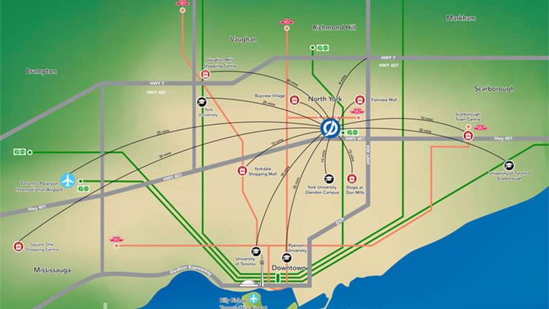 方便的交通King's Landing 坐落于大多伦多地区的中心,Sheppard夹Leslie的交界路段之上,邻近多伦多两大主要交通骨干401、404以及贯通全市的地铁干线。