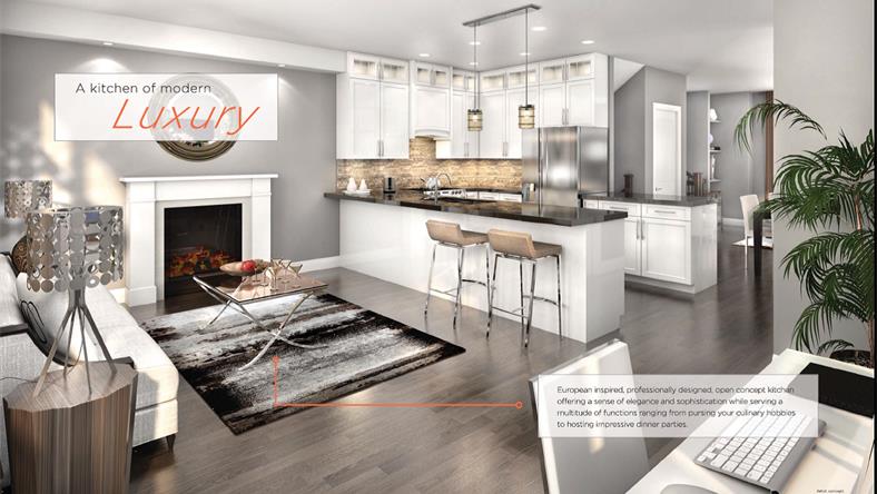 - 开放式概念厨房, 花岗岩台面和玻璃后挡板