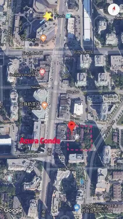Azura Condo坐落在Yonge & Finch旁,举步就可到Finch Station地铁站,GO Train, VIVA 和TTC公共交通系统可以带您到达大多伦多地区的任何角落。楼盘交通位置方便。 步行至地铁站只需要2分钟,往返市中心及多大十分方便 公车直达约克大学或 Seneca College,地铁直达多伦多大学, 拥有100/100的TransitScore 车行5分钟至HWY401 车行12分钟至 DVP 车行15分钟至Yorkdale Centre 近Centerpoint Mall, North York Center购物中心,BMO、RBC、TD、CIBC所在的金融区,一流医院,Cineplex电影院,LCBO,更是分布在您家门口,尽享方便。政府机构、多伦多教育局以及北约克的中心图书馆一字排开,银行、超市以及大小商铺星罗棋布,尤其是餐馆,可谓数不胜数,韩餐,中餐,西餐,日料,小吃,甜品应有尽有。