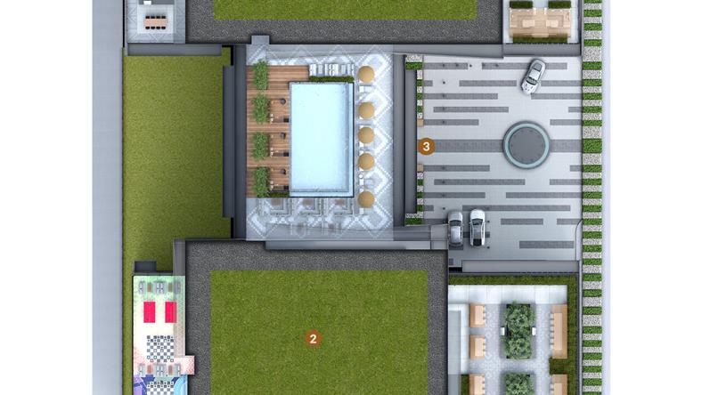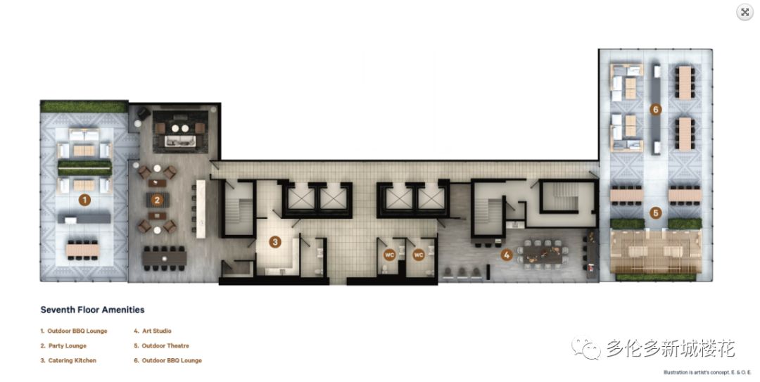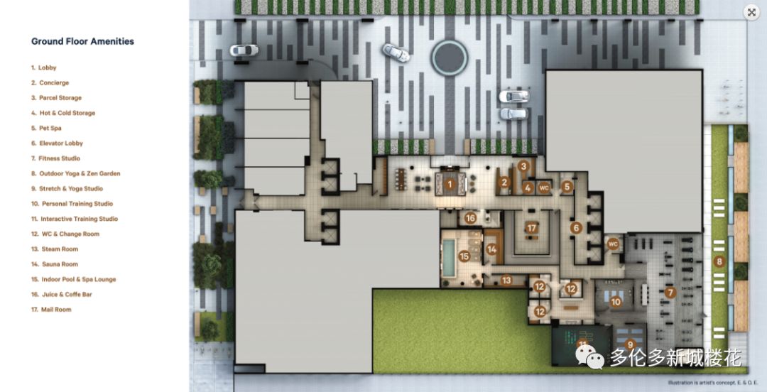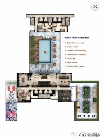 公 寓 设 施 开发商精心为住户设计了,其包括了豪华庭院、专属Uber和Lyft接送区、健身工作室、瑜伽室、SPA休息室、桑拿室、Club、户外烧烤和餐厅、派对室、室内剧院、户外泳池、图书馆及24小时礼宾及安保服务等等。