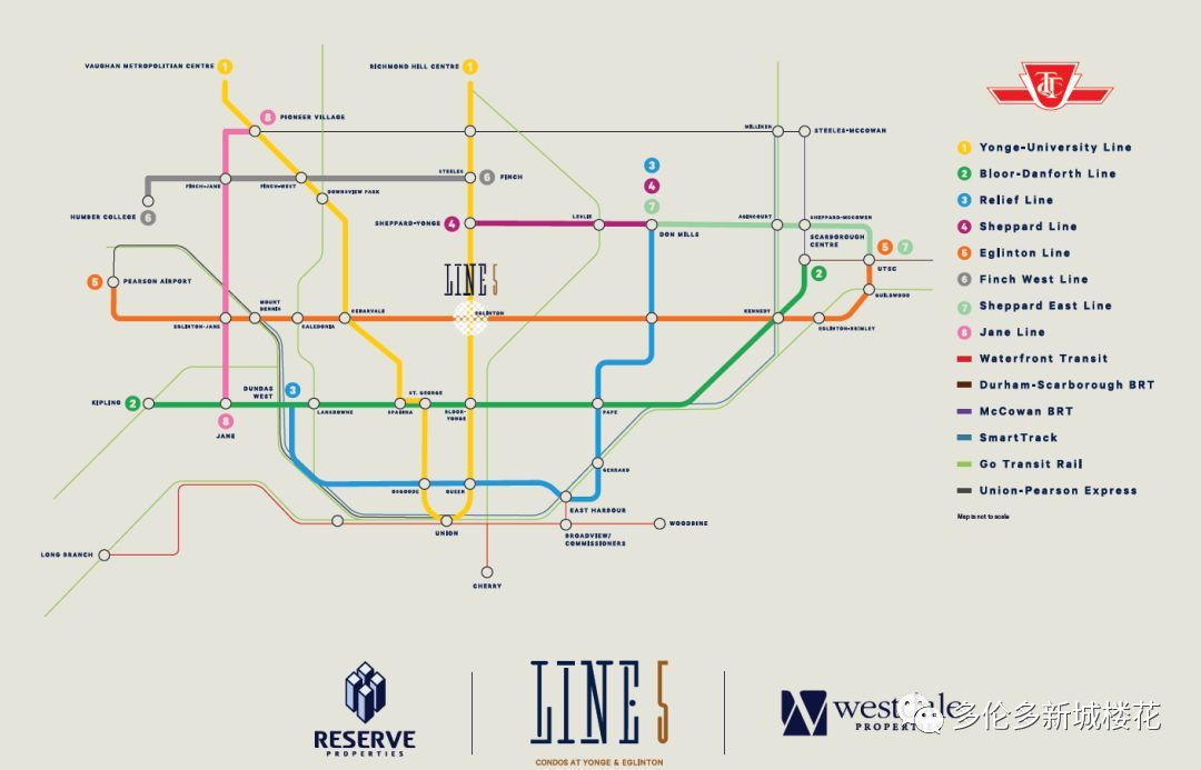 Line 5 Condos 举步地铁站,LRT Line 5二期位于Yonge/Eglinton,共33层,地址是117 Broadway Ave,Toronto。