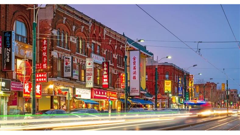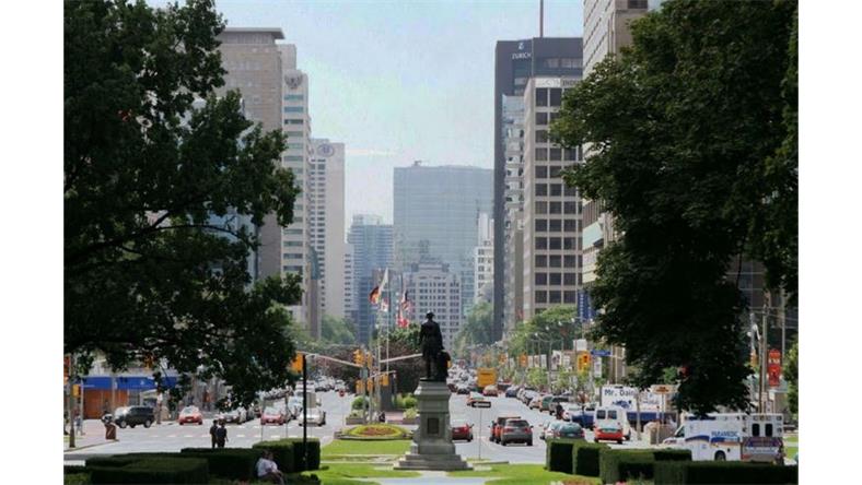 一路接踵相连的是安省博物馆,多伦多大学,安大略省政府,多伦多五大医院(多伦多总医院,多伦多妇女医院,多伦多儿童医院,多伦多Mt Sanai医院,多伦多肿瘤医院),Osgoode Hall,使馆区(中国,美国,等等),香格里拉酒店,和联合车站(Union Station),中间还有各种雕像,喷泉,花园点缀。