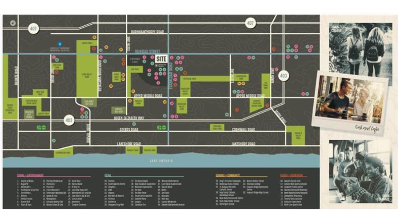 Oak & Co.位于Dundas和Trafalgar交界,地处Oakville市中心最佳地段,周边生活配套齐全,紧邻Real Canadian Superstore, a Canadian Tire, 以及沃尔玛Oakville Supercentre等大型超市,距离Oakville最大购物中心Oakville Place Mall仅数分钟车程!