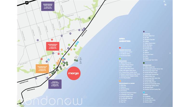 多伦多最高性价比的湖景公寓Merge Condos来了!Merge公寓紧邻世嘉堡著名的悬崖公园(Scarborough Bluffs Park),零距离接触大自然,将安大略湖美景尽收眼底。该楼盘位于Kingston Rd/Danforth Ave。距离Scarborough Town Centre只有不到15分钟之遥。具体位置是2201 Kingston Road, Scarborough。预计2022年建成。Merge Condos并没有像其他公寓一样成大都市标志性摩天大楼,反而以最柔和舒服的方式,让人忍不住亲近。公寓楼高10层,共计180个公寓单位。但公寓内部户型种类繁多,不仅有普通公寓楼还有复式楼和镇屋,满足住户们各式各样的需求,房屋面积从404sqft到1084sqft不等。公寓内部配有2层健身房和瑜伽室。室内和露天派对室,屋顶景观聚会区,烧烤区,媒体娱乐室甚至宠物洗浴室。公寓将有2层地下车库,共计169个停车位和188个自行车位。Merge公寓位于世嘉堡非常中心的地段,虽然是湖景公寓但周围生活设施都相当丰富齐全,中西餐各国菜系餐厅环绕周围,中西超市一应俱全出门即达,Shoppers、Rexall等大牌药妆店也都在步行可至的范围之内,满足住户一切生活所需。著名的多伦多大学世嘉堡分校也在周边范围之内,在工作与学习的忙碌生活中还可以享受着美好的自然环境。