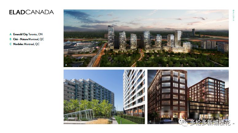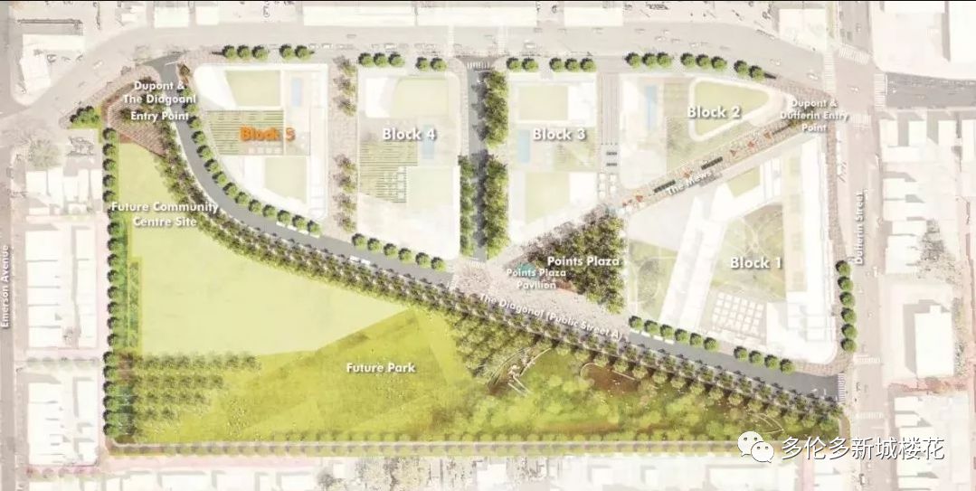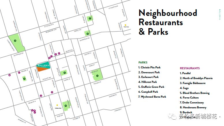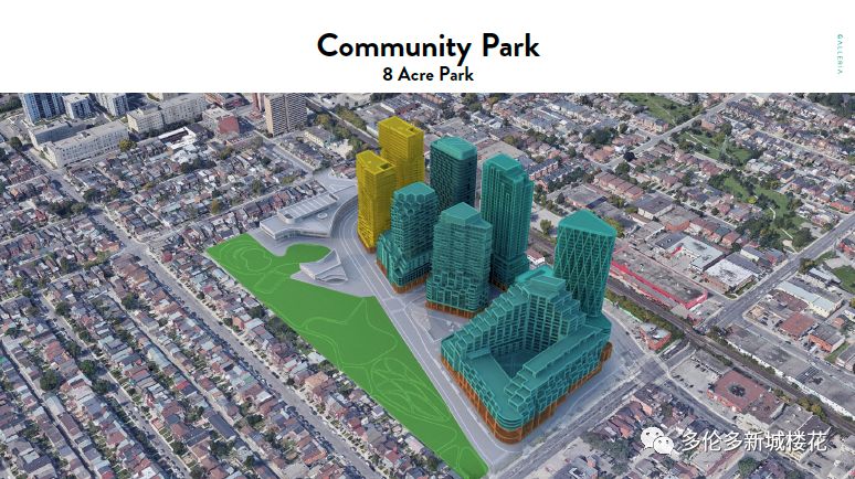 【项目名称】Galleria On the Park 【开发商】ELAD Canada 【具体地址】1245 Dupont St, Toronto 【预计入住】2023年 Galleria On The Park Condos,位于1245 Dupont St 也被称为第五街区,位于多伦多Dupont和Emerson交界的西北角。将待建造的系列公寓将容纳近2,846个公寓单位,涵盖超过300,000平方英尺的商业单位。将致力于将现有设施重新打造为集住宅,零售,办公,市政和娱乐于一体的高密度社区。 这一街区曾经是一个工业城镇,历史悠久,被称为多伦多最古老的街区之一。Galleria On The Park总体规划将重建位于1245 Dupont St的Galleria购物中心,并重新铺设公共街道和私人街道,更好的聚集及利用空间。将致力于将现有设施重新打造为集住宅,零售,办公,市政和娱乐于一体的高密度社区。