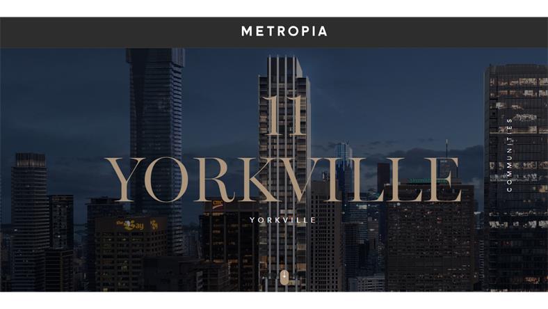 【楼盘地址】11 Yorkville Avenue,Toronto, ON M4W 1L2 【交叉路口】Yorkville Ave & Yonge St 【开发商】 Metropia,RioCan Living and Capital Developments 【建筑商】Sweeny & Co. 【楼高】62层 【单位数】638户 【起价】$50余万起 【预计交房】2024年 11 YORKVILLE CONDOS由三家开发商Metropia、RioCan Living和Capital Developments联合开发,公寓选址在多伦多最中心的繁华地段Yonge / Bloor,举步可至地铁站、多伦多金融中心、Holt Renfrew和Manulife Center等。另外得天独厚的学区位置(多伦多大学, 瑞尔森大学)更是凸显了其自住和投资的优势。