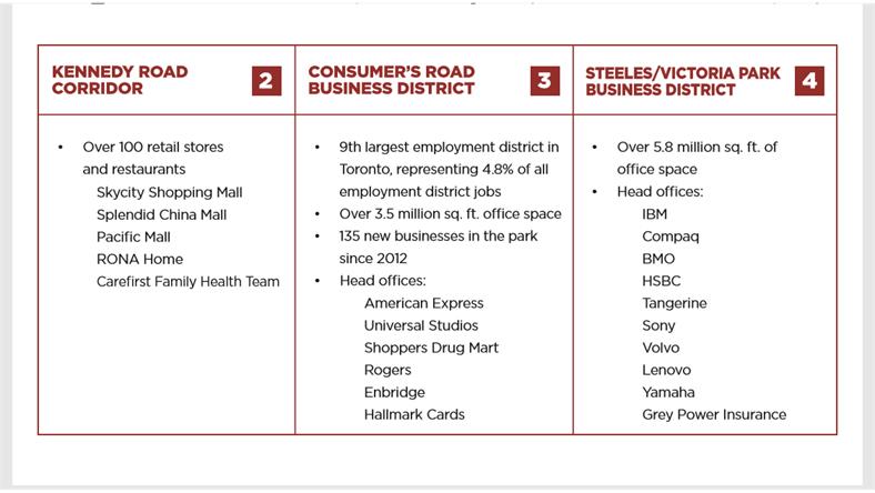 位于士嘉堡市中心,交通方便通达城市的任何地方。未来Sheppard地铁将延伸到附近。近多条TTC巴士路线,GO站,士嘉堡中心站,140号高速公路, 近三所著名学:Seneca, Centennial college和多伦多大学。