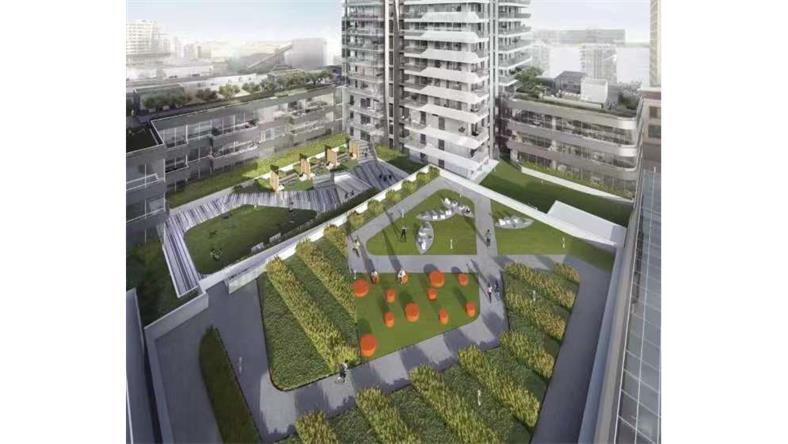 社区共提供600万平方英尺的住宿空间和3层的零售空间,近80万平尺商业面积,包括豪华酒店,1万平尺的娱乐健身休闲区域,5千平尺的会员制社区中心。