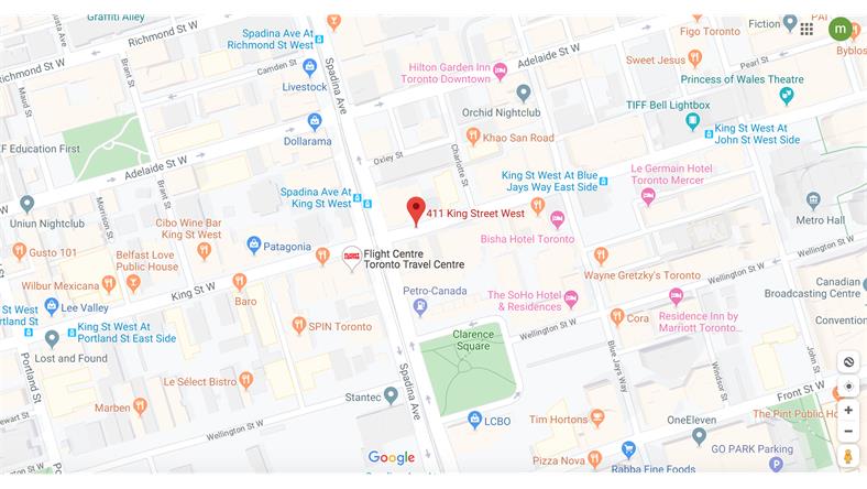 411 King 豪华公寓楼盘位于多伦多市中心钻石地段金融娱乐区,King Street夹Spadina的东南角,是处于最繁华、最热闹的时尚区和娱乐区的交汇处,也是人流量最大的一块区域。双满分100分的步行指数和交通指数,步行几分钟就到市中心金融群楼,走路去地铁也就只要数分钟!入住411 King您可以随时享受到多伦多世界级的交通系统。因为该区域拥有超过15种的不同运输路线。St. Andrew地铁站都在步行范围内;对于驾车者来说, Gardiner Expressway加德纳高速公路就在附近。这是一种Life Style,深受专业人士喜欢,走路去上班,下楼吃个美食,看个歌剧,走路去rogers Center, Air Canada Center看个球赛演唱会,所以King West最具多伦多最洋气最正能量最年轻有活力,好比纽约的SOHO区,绝对不能错过!