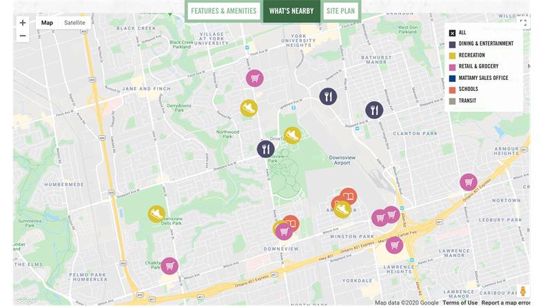 位于Downsview公园内,公园对面是Downsview park Merchants Market,这是一家提供各种服装的室内购物中心,还有一个农贸市场和美食广场。 购物距离 Yorkdale Shopping Centre、好市多(Costco)、沃尔玛(Walmart)和许多其他商店只有几分钟的路程。毗邻广阔的绿地,四周绿树成荫。 附近有很多学校。居民也可以很容易地进入附近的高尔夫俱乐部。 交通便利,购物方便,娱乐设施便利,应有尽有,轻松舒适的感觉将成为你日常生活的一部分。 Downsview Park的对面是GO Train,提供全天服务和TTC连接。 步行几分钟就可以到达Sheppard West subway station和Wilson subway,它们都在同一条线路上。 去多伦多市区旅行既方便又快捷。邻近Hwy 401 和Hwy 400,任何方向均可快速乘车。 距多伦多皮尔逊国际机场仅12公里,只需10-15分钟即可到达机场。或者附近的主干道,如Yonge St和Wilson Ave,都为通勤提供了便利。 数分钟可至约克大学以及Humber River社区医院。 离市区很近,地铁和高速公路使得居民们可以方便快捷地往返于他们想去的任何地方。