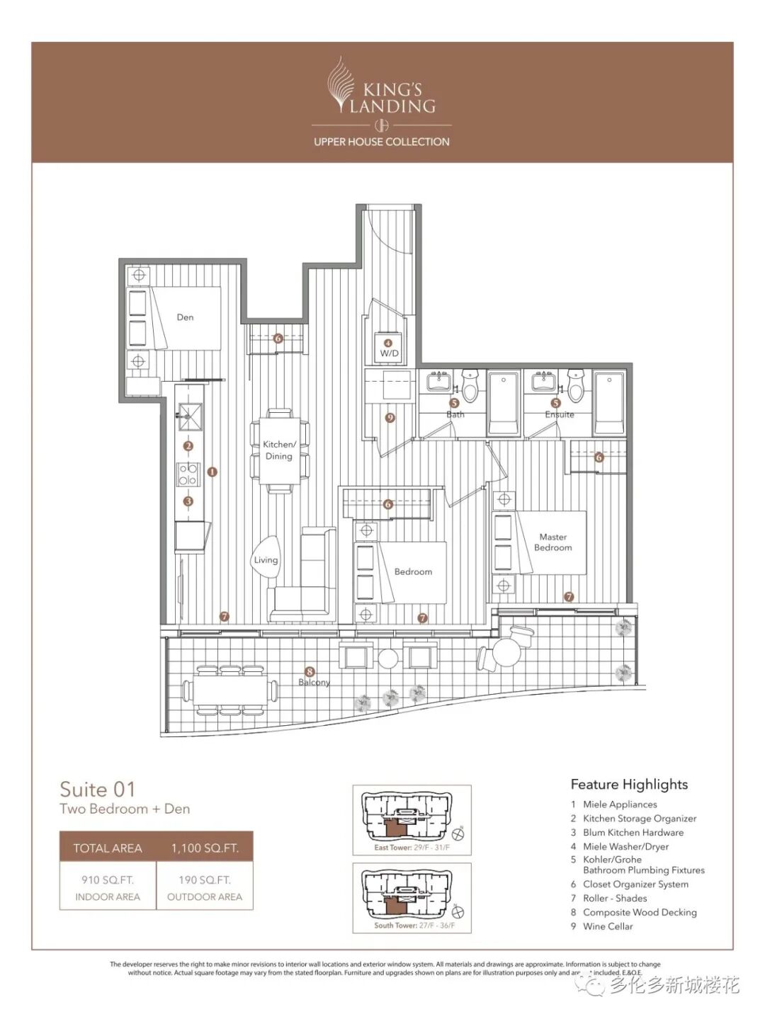 户型价格 户型:2B+D 面积:910 sq. ft. 朝向:SW 西南 楼层:27th 价格:$1,101,900 户型:3B 面积:838 sq. ft. 朝向:NE 东北 楼层:30th 价格:$1,030,900 户型:3B 面积:1113 sq. ft. 朝向:SE 东南 楼层:27th 价格:$1,353,900 你住在一个国际大都会繁华市区住宅小区内,一下楼迎面就是一个公园,仿佛置身城市绿洲,该是多么惬意,这就是加拿大最大开发商之一–协平嘉德(Concord Adex)在多伦多北约克区全新小区帝景豪城(Concord Park Place)的设计,Seasons Condos 豪华公寓由著名发展商Concord Adex(协平嘉德)开发。Concord Adex是加国最具规模开发商之一协平世博集团 (Concord Pacific) 的集团成员。稳占加拿大地产市场领导地位的协平世博集团,已有超过20年历史。它打造的每个社区的每一个环节,皆悉心策划;每一项细节,均精心设计,就是如此无微不至,从选择最有潜力的地段,到兴建最完善的配套,到拓宽每户住宅的景观、协调每座建筑的风格、精选每种建材和用料,以至设计区内街道的一草一木、一砖一瓦,都一丝不苟,力臻完美。 付款方式 加拿大居民:签约付5%;120天付5%;210天付5%;400天付5%;入住时付5%(共25%) 非加拿大居民:签约付10%;120天付10%;400天付15%(共35%) 车位:$66,000 储物间:$12,000 管理费:$0.60/sqft(不包电) 预计交房时间:2022年夏天 联系我们