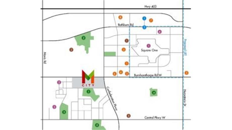 1. 生活便利:紧邻密西沙加市政厅City Hall,Celebration Square庆典广场,中央图书馆Central Library,Square One第一广场购物中心,市生活艺术中心Living Arts Centre,戏院电影院Movie Centre,密市游戏游乐宫Playdium,华人超市黄金广场大统华超市和餐馆,紧邻403/401/QEW高速公路,轻轨快车即将通车。