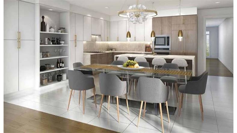 设计精美的现代厨房拥有着让美食家都能沉浸的光鲜风格,石英台面,嵌入式不锈钢电器,为准备佳肴提供了完美空间,可以和家人一起度过高质量的家庭时间。即使是多人聚会,也有着充分的活动区域。