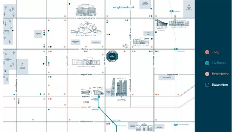 VAUGHAN 旺市在多伦多市区以北的约克区,邻近北约克与列治文山等热门区域,平均房价相对较低,且Abeja District Condos的价格更是旺市楼盘中物美价廉的选择。随着多伦多房地产市场价格的不断上涨,越来越多的家庭选择这个快速发展中的新兴地区。而位于该项目对面的Vaughan Mills Mall,就是旺市最大的购物中心,也是加拿大最大的封闭式购物中心之一。 旺市作为全加拿大发展最快的都会区之一,发展得越快,就越与周边紧密相连,这使得步行、驾车、乘火车或乘公共汽车出行变得越来越容易。400号高速公路就在该项目拐角处,旺市都会中心就在附近,距公寓仅数分钟车程,从对面的购物中心乘公交仅10分钟。这是一个交通枢纽,可乘TTC地铁前往市中心,也由Viva,YRT和Zum公交系统提供服务,代表与列治文山(Richmond Hill),布兰普顿(Brampton)和万锦(Markham)等邻近城市的连通性,也可乘坐GO Transit前往周边各地。 05