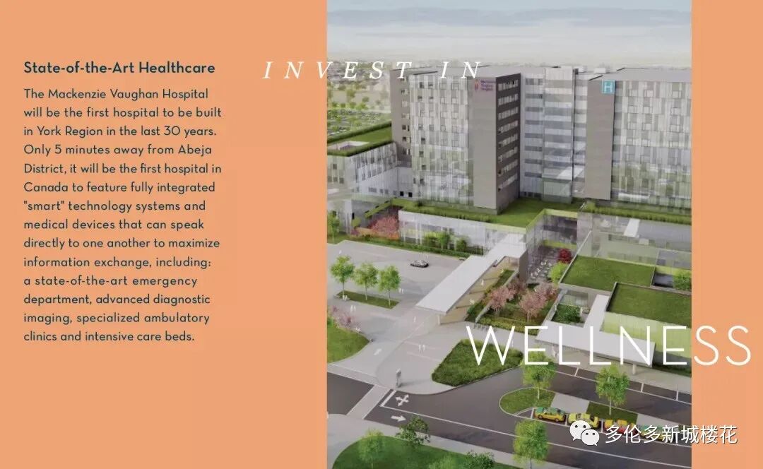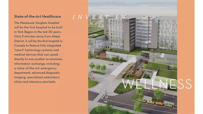医疗建设也是择盘的重要考虑因素。医院,除了提供即时的检查以外,同时会带来大量的岗位,提升周边就业机会。Mackenzie Vaughan Hospital,加拿大第一家“Smart Hospital”,车行Abeja District Condo,仅需10分钟! 临近6-acre 各类公园