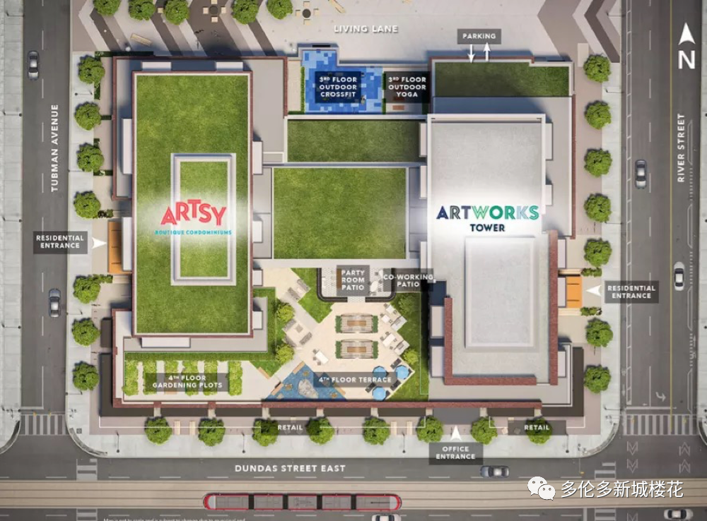 项目名称: Artsy Condos 楼盘地址: 35 Tubman Avenue, Toronto 建筑类型: Condominium 开发商: Daniels 楼盘层高:11 预计单位:116 主要路口:Dundas St E & River St 入住时间:2021年底 Artsy Condos公寓是由开发商Daniels在多伦多Dundas St E和River St交界处附近投资开发的豪华住宅公寓项目,公寓隶属多伦多最大复兴区域Regents Park社区,周围被Eaton Centre, 瑞尔森大学,乔治布朗学院所围绕。 Artsy Condo第三期公寓共11层,预计将提供116个单位,户型有Studio,一居室,两居室,三居室可以选择,以满足不同目标客户的需求,帮您实现梦想中的家。 02