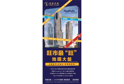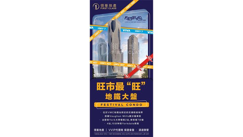 Festival就位于 VMC的TTC 地铁站附近一个交通枢纽地带,步行去VMC地铁站仅需8分钟,在这里还有VIVA,YRT和ZUM公交系统也为人们提供服务。去Richmond Hill和Brampton,Markham等周边地区都十分便捷!
