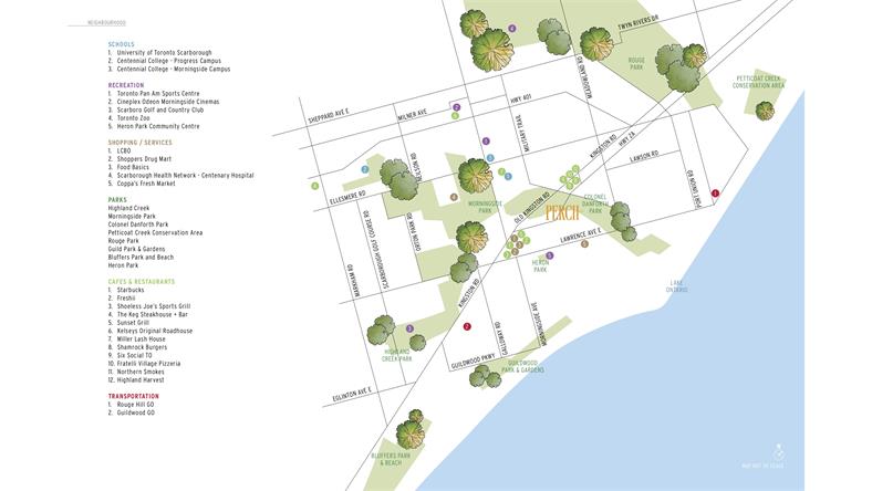 便捷的地理位置: - 开车5分钟可达多伦多大学世嘉堡分校 - 开车5分钟可达百年理工大学Morning Side校区 - 开车10分钟可达百年理工大学Progress校区 - 6分钟可达Hwy 401 - 6分钟可达Rouge Hill Go - 7分钟可达Guildwood Go - 举步TTC车站可通达UTSC和百年理工 - 15分钟达Scarborough Town Centre购物中心 -数分钟车程可到多伦多动物园 - 附近公园林立,如Highland Creek,Morning Side Park,Colonel Danforth Park等。 -周边百货商铺名校环绕,环境优美,却闹中取静。公寓周边基础设施丰富,60多家商铺环绕,包括各大银行、药店、咖啡店以及Food Basic和No Frills等超市。 03