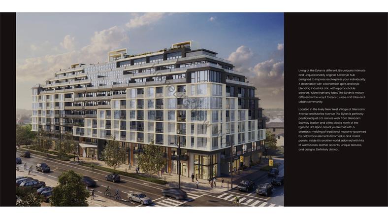 项目名称:Dylan Condos 楼盘地址:831 Glencairn Avenue, Toronto, ON 交界处:Glencairn Ave&Marlee Ave 楼盘开发:Chestnut Hill Developments 楼层高度:10 层 单位数量:218 面积:505 sq ft ~1305 sq ft 交房时间:2024年3月 The Dylan Condos是由著名开发商Chestnut Hill Developments在北约克核心地带开发的精品楼盘。地理位置得天独厚,位于Glencairn Ave&Marlee Ave交叉路口。The Dylan项目距离Glencairn TTC地铁站,Yorkdale购物中心,York大学以及许多商业园区和办公大楼只有数分钟的路程,是年轻专业人士,学生和家庭的理想之选。 优越地理位置
