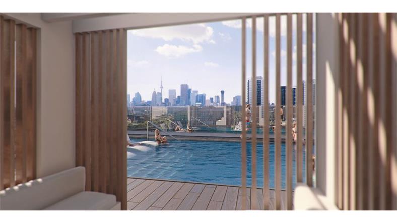 公寓配备超大健身中心、24小时前台、多媒体区、宠物清洁区、工作区、瑜伽室、运动场、派对室、娱乐厅、游戏厅等现代化娱乐项目。这个公寓的最佳特色之一无疑是它的户外露台,它将占据中层的12层,面积为9,612平方英尺,展示了河流,安大略湖和市中心天际线的无与伦比的景色。该楼层将增加1,377平方英尺的室内休闲空间,第13层还将增加1,474平方英尺。公寓设有私人阳台和落地窗,可以享受现代化的室内设计,充足的设施和丰富的生活体验。River&Fifth Condos的三层地下停车场将容纳226个车位和570个自行车存放空间, 包括电动车位。这是一个精心设计的开发项目,汇集了当代最好的生活空间和一些城市最好的自然资源。 设计与开发商: