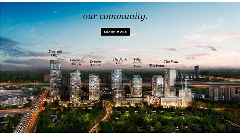 【公寓地址】Helen Lu Rd & Don Mills Rd 【开 发 商】Elad Canada 【公寓名称】Point, Peak, Lumina(3栋) 【交房时间】预计2021年底 三栋公寓位于北约克中心地区,Don Mills和Sheppard Ave的东南角,倚靠着Don Mills地铁站,同时与North York地标商场Fairview Mall比邻,并且临近加拿大交通要道Highway 401与404,居住在这里不论出行与生活都十分便捷。