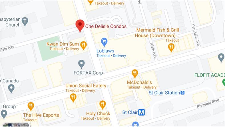 One Delisle Condos公寓地处多伦多Yonge Street和St. Clair Ave.的交界处,公寓地理位置优越,周边设有多个TTC公交车站,步行4分钟即可抵达St. Clair地铁站,抵达多伦多市中心金融街写字楼、多伦多大学、瑞尔森大学等高等学府都仅需10余分钟。 公寓居民还可以乘坐St. Clair电车轻松穿越市区,只需10分钟即可到达1号线的另一个地铁站St. Clair West站。5号线Eglinton LRT轻轨线路Eglington站距公寓也仅2站地铁,而该轻轨线路预计将于2021年完工并开始运营,届时公寓的交通优势将进一步显露。此外,驾车从公寓出发不到10分钟即可进入401、 Don Valley Pkwy和Gardiner等多条高速公路。 投资回报: