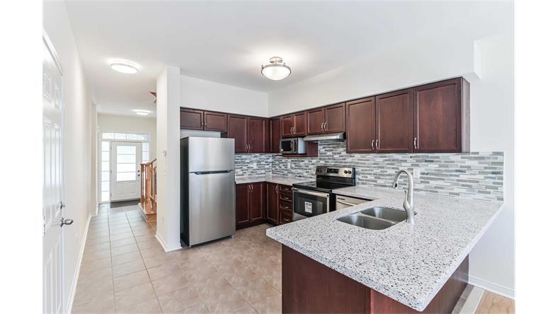 位于万锦Wismer名区的三室现代连屋住宅。一楼9尺楼底。升级现代厨房,石英台面和后挡板,全实木地板。几分钟可到Go站,举步即到Fred Varley小学,Bur Oak中学,公园。