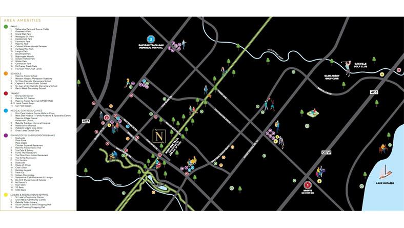 奥克维尔(Oakville)一直被评为加拿大最佳居住地之一,拥有数公里长的休闲步道,广阔的绿地,世界一流的购物中心,精品店,世界闻名的高尔夫球场,现代化的休闲中心,崭新的医院,美术馆以及先进的演艺中心。NUVO Condo交通便捷,楼下便是公交站,可以直达Go火车站。附近403、401、407和QEW四条高速公路,可轻松到达GTA中的任何地方。漫步于小径和小溪,享受度假村式生活,体验先进便利的生活设施,是NUVO人的骄傲。