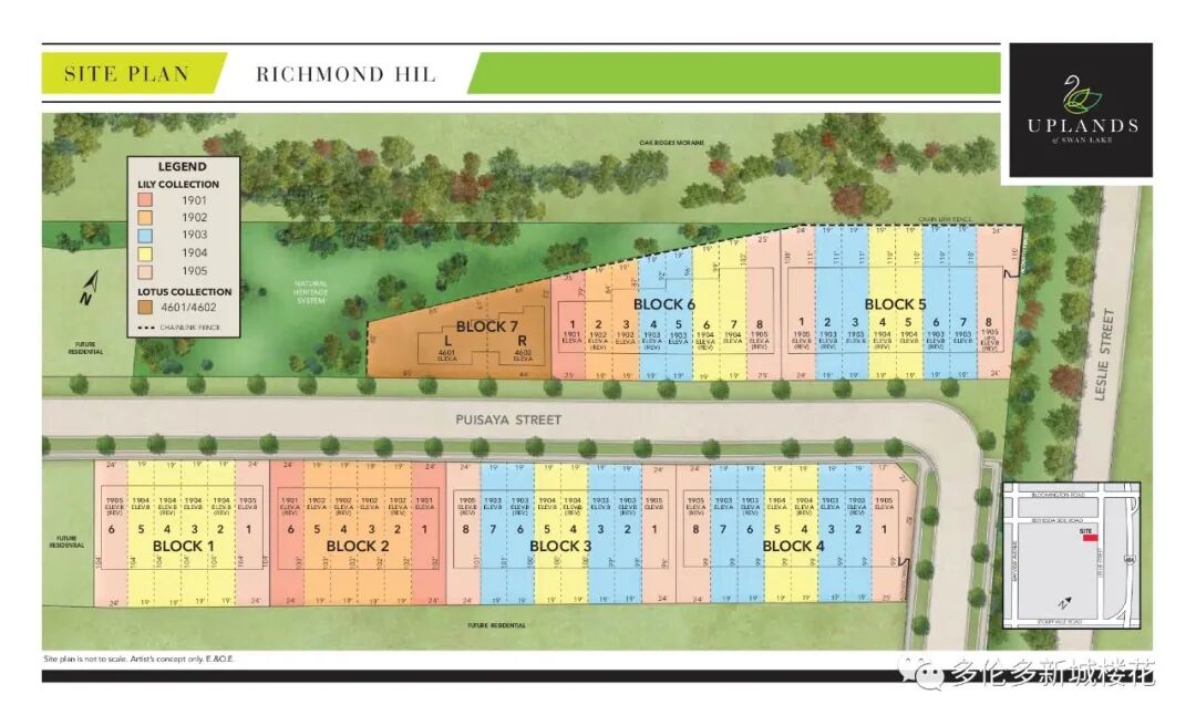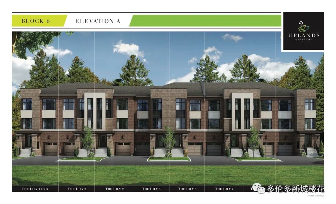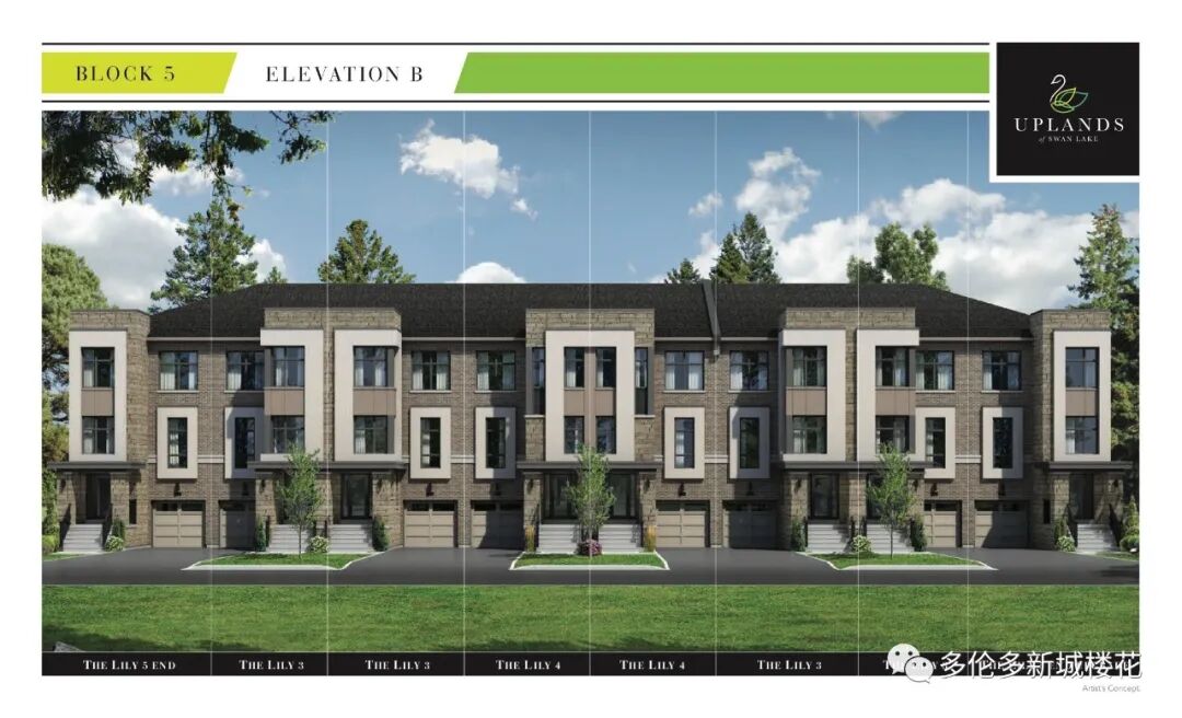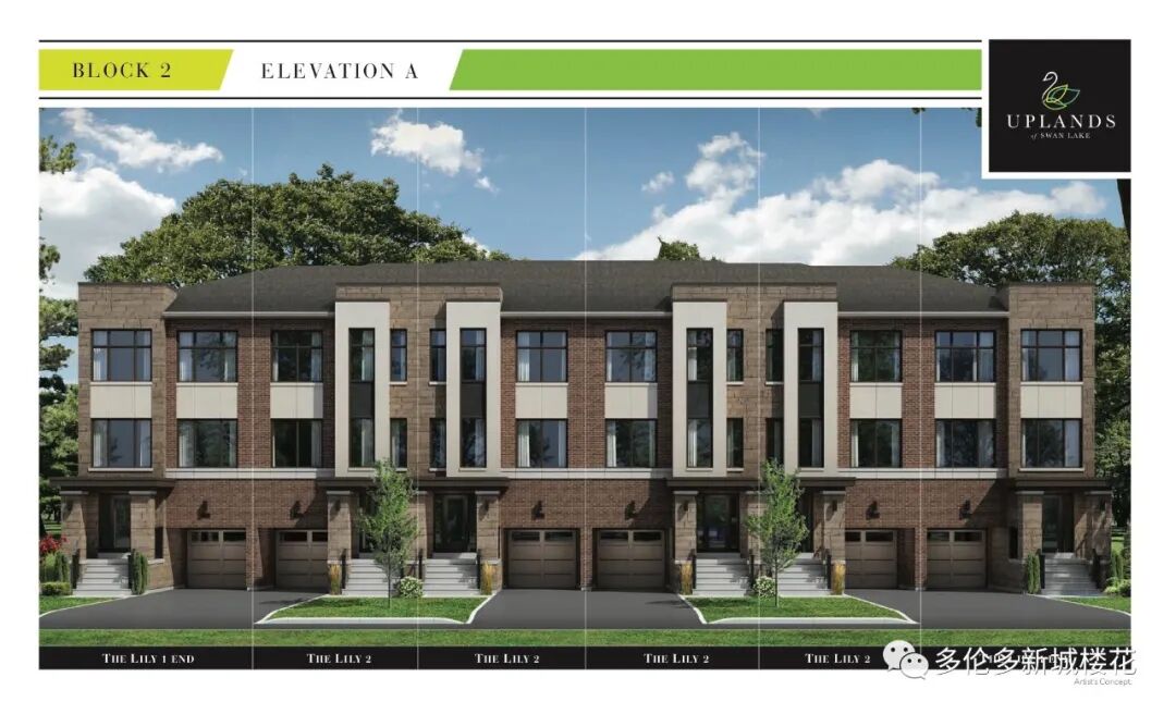 【项目名称】Uplands of Swan Lake 【项目地址】12826 Leslie St, Richmond Hill 【交界处】Bethesda Road & Leslie Street, Richmond Hill 【开发商】 Caliber Homes 【价格】114万起 【入住日期】2021年底 Uplands of Swan Lake联排别墅楼花位于列治文山,Bethesda Road & Leslie Street交叉口西南角。地理位置十分方便,社区环境优美安静,众多高尔夫球场和湖泊围绕,生活休闲娱乐购物极为便利!车程10分钟内即可到达超市、影院、商场、餐厅、银行等场所。 绿色城市-Richmond Hill