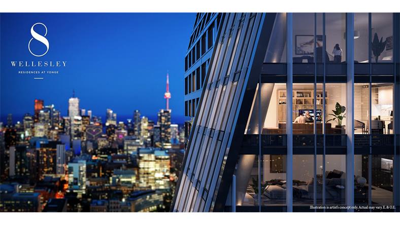 8 Wellesley 周围有各种各样生活便利设施!您都会在步行距离之内找到它们。距离Yorkville、多伦多大学、Ryerson大学、Eaton中心、金融中心、娱乐中心、Yonge和Dundas广场仅几步之遥。周边近来自世界各地风味的特色餐馆、精品店及学校。楼盘周边交通出行工具极为便利,其中TTC地铁站可链接1、2号线路,东西南北,任您选择;Street Car街车更能为您游遍多伦多市中心带来无尽的便利。地处多伦多Church-Yonge走廊地带,步行指数99,交通出行指数93;