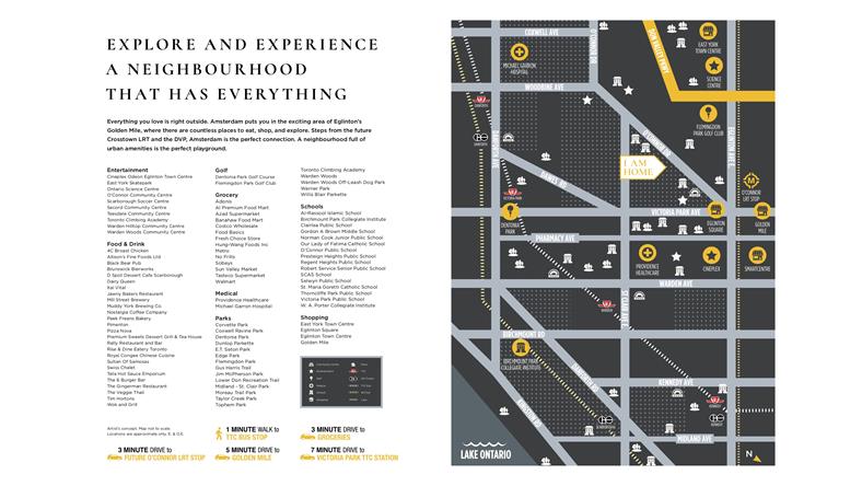 项目名称:Amsterdam Urban Towns 交叉路口:O'Connor Dr & St. Clair Ave E 面积:990 sq. ft. to 1,825 sq. ft. 价格:70余万起 户型单位:Upper Level 高层套房,设有宽敞的屋顶花园, Lower Level 舒适套房,设有私人户外露台 开发商:RISE Developments 交房时间:2022春季 项目共计52套住宅单位,均为四层建筑,实用两居室/传统三居室,室内面积从990 sq. ft. to 1,825 sq. ft.,52个地下第车位和专为访客者专设了9个车位。优美的社区空间,配搭适当的绿化设计成就东约克最独树一帜的景色。Amsterdam Urban Towns 具备先天性自然环境优势,三个公园环绕,环境优美宁静, 高尔夫俱乐部近在咫尺。步行距离可到达超大型购物广场EGLINTON SQUARE,驱车轻松前往安省最小资购物中心SHOPS AT DON MILLS,为你带来一系列高尚的购物餐饮体验、特色酒吧、超市购物的便利。 地理位置: Amsterdam Urban Towns 地理位置优异,去往多伦多各个角落都十分方便。距离5KM DVP高速公路,未来开通新的CROSSTOWN LTR,步行可至SLOANE或O'CONNOR车站,直通Yonge和Eglinton,这便是他人眼中羡慕嫉妒的黄金屋。 东约克成熟社区,Eglinton以北,Victroia Park以西。自然环境极佳,优美大隐于市。邻近高尔夫俱乐部。高端社区形象拔地而起。同时项目临近购物中心,大型超市,电影院,餐饮,银行,公园,社区中心等等,生活配套便利:walmart、costco、宜家、购物广场均6分钟内距离 。 毗邻future Eglinton Crosstown LRT 3分钟车程可达Eglinton Square购物中心 4分钟车程可达Metro/Walmart/Home Depot 6分钟车程可达Costco 6分钟车程可达Eglinton市中心 6分钟车程可达Warden地铁站 15分钟便可到达多伦多市中心 项目特色: 三个社区公园Warner Park, Topham Park and Edge Park 高尔夫爱好者的首选,弗莱明顿公园高尔夫俱乐部尽在咫尺 Amsterdam Urban Towns项目外观设计前卫且现代,让您住得赏心悦目 Amsterdam Urban Towns室内大面积采用落地玻璃设计,最大程度保证采光 现代都市联排 简约前卫: Amsterdam Urban Towns项目外观设计采用灰色调和简约的浅色系赋予精致时尚的现代观感,外观上采用集砖石,高档木制和混凝砖为一体的混合方案,前卫且现代。套房室内设计,简约考究。外观为四层高阶梯式递进,为户外设施提供了很大的空间,象征欣欣向荣节节攀高。同时,设计师大面积采用落地玻璃设计,最大程度让阳光倾泻进来,通透敞亮。公寓的私人露台以及外部景观相结合,使公寓整体上给人一种错落的别致。 开发商: RISE Developments是GTA中业界瞩目的明日之心。他们是专门的房屋建筑商,致力于为您和您的家人创造最好的房屋,并在在设计和建造豪华住宅方面树立了良好的声誉。 RISE以重质、设计独特而出名。这意味着他们注重建设新生房屋的每个细节,每个阶段在设计和执行时都精工操作,无论是厨房,客厅,卫生间,卧室,考究的空间,保暖高端的用料,精致的装修,都会在您入住的那一刻,展现。 付款方式: 本地买家:签约付$5,000;30天付5%;90天付2.5%;180天付2.5%;270天付2.5%;360天付2.5%;入住时付5%(共20%) 非本地买家:签约付$5,000;30天付5%;90天付10%;180天付10%;365天付5%;入住时付5%(共35%) 管理费:$283/月 价格含了车位以及LOCKER