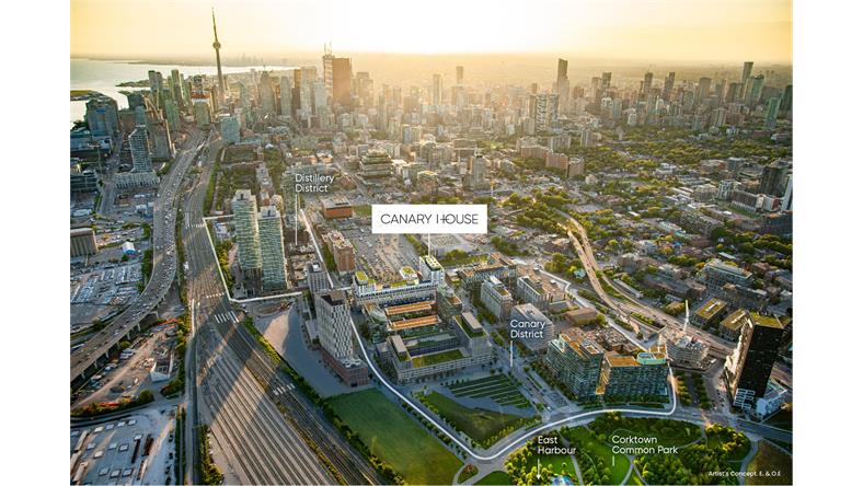 该公寓是Canary District超级规划社区的最新一期。众所周知,位于West Don Lands的超级规划社区Canary District占地35英亩,这些年来一直在为 整个多伦多市区东部不断注入新的活力。这个社区最早源于2015年举办的Pan / Parapan Am 运动会的运动员村,目前拥有乔治布朗学院的首个学生宿舍 ——占地面积为82000平方尺的Cooper Koo Family YMCA,还以倡导“生命在于运动”的Front Street Promenade闻名遐迩。Canary District与18英亩 的Corktown Common公园、长达1800公里的步道、邻近的古酿酒厂区(Distillery District)以及多伦多市中心紧密相连,是每一个在多伦多地区打拼 的人生活、工作、购物和娱乐的最理想区域之一。