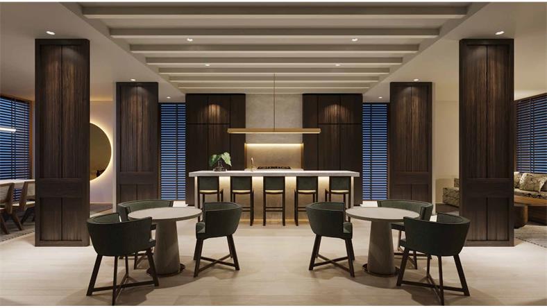 Canary House有13,000平方尺的室内室外公寓配套设施,包括屋顶花园