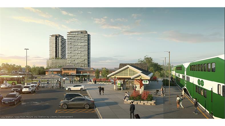 Joy Station Condos是由知名开发商Liberty Development公司投资开发的豪华公寓楼花项目,位于万锦市的Wismer社区内,近Markham Rd和Bur Oak Ave的交界处。步行距离Mt.Joy Go Station 火车站。该项目是一座22层高的大楼,拥有520多套混合公寓单元,此外,该项目还将在公寓旁规划12套现代联排别墅。
