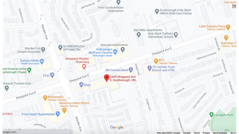 居住在此的交通生活极为便利。就算不开车,门口公共交通直通GO/地铁即可到达市中心。自驾出行临近401/DVP。周遭设施配套完善,开车10分钟内可至Scarborough Town Center,Kennedy Commons以及Agincourt Mall。Walmart, LCBO, McDonald,La Fitness等环绕周围。超市、餐馆、银行、健身房也都错落在商圈四周,非常方便。前往U of T Scarborough,Seneca,Loyalist和Centennial Colleges学习也十分方便。项目附近建设超大绿地,让人在城市繁忙之余享受自然的悠闲。 公交线路众多,公交15分钟内可抵达4号线地铁Don Mills站或Agincourt GO Train站,45分钟到即可抵达多伦多市中心。近401、404和Don Valley Pkwy等高速公路,不到25分钟即可抵达多伦多市中心。 Smart Track