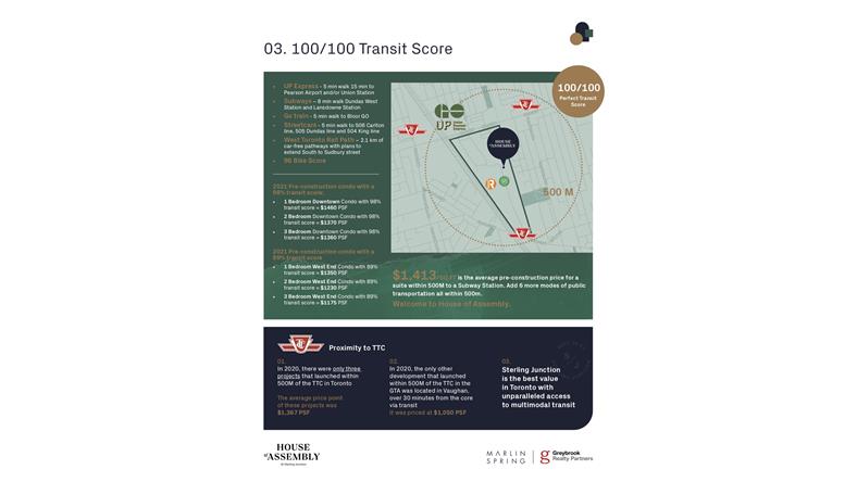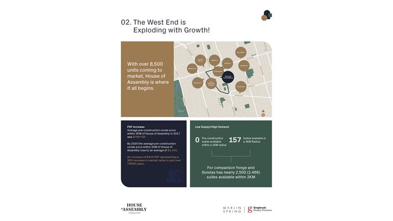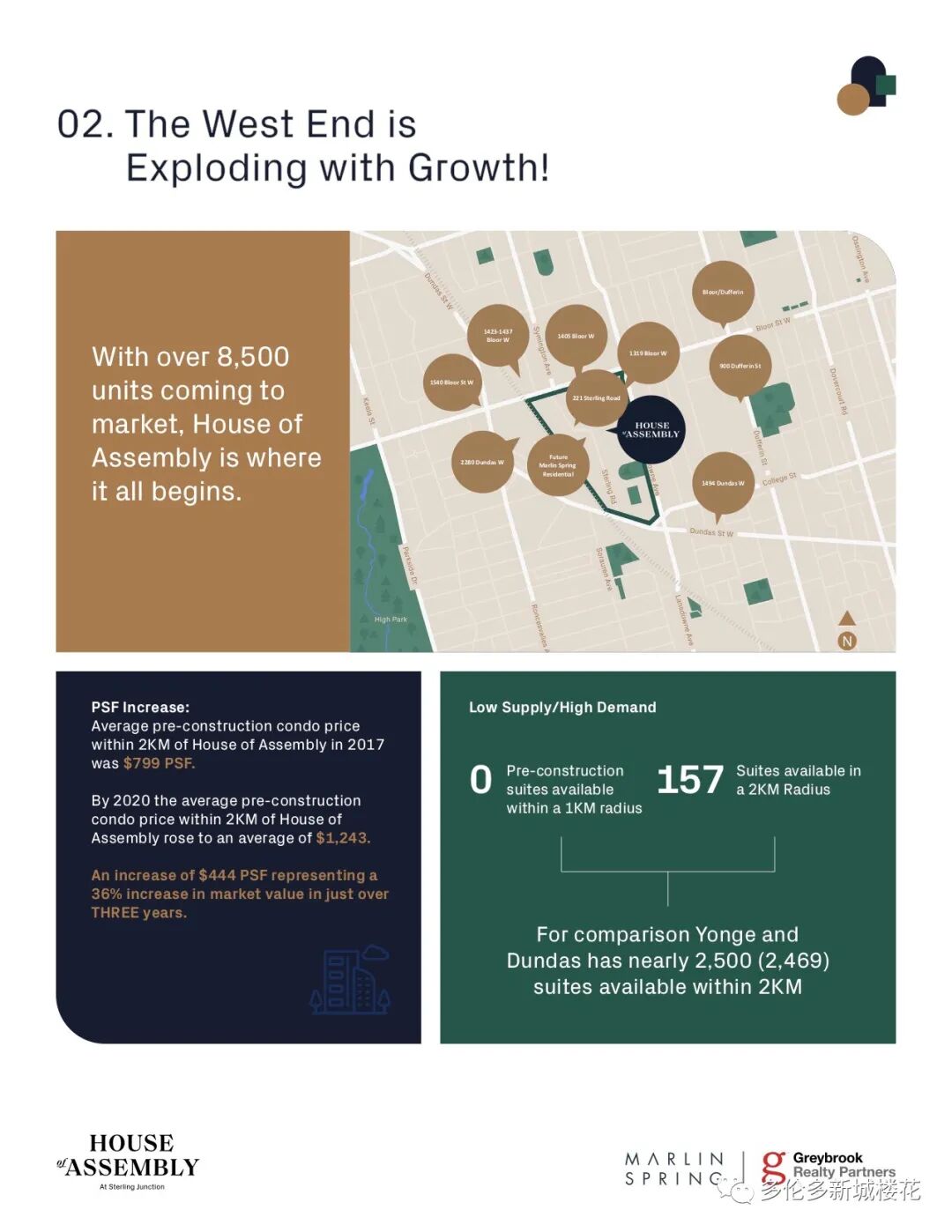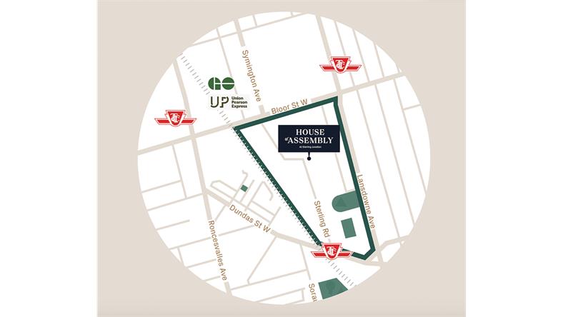 未来在这里建成的全新总体规划社区将包含三座住宅公寓和三座商用大楼,带来超过420,000 平方英尺的新办公区域。社区毗邻市中心,轻松可至工作密集区,是通勤者的便利选择。其中,House of Assembly是该社区第一期住宅公寓,也是整个社区建设的基础。距离多伦多市中心几步之遥,轻松可至工作密集区。约4.0%的就业增长,为人们带来了更多的就业机会。 社区附近便利设施齐备,餐饮、购物、娱乐、银行、超市、零售一应俱全,满足居民所有生活需求。社区距离当代艺术博物馆MOCA一步之遥,为社区大大增添了多元文化层次,也因其充满活力的社区氛围吸引了大量的艺术家、酿酒师和工匠等。社区附近公园遍布,距离High Park公园不足10分钟路程,步道和小径环绕,提供充足的绿色空间,是户外爱好者的绝佳选择。 配套设施: