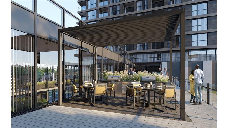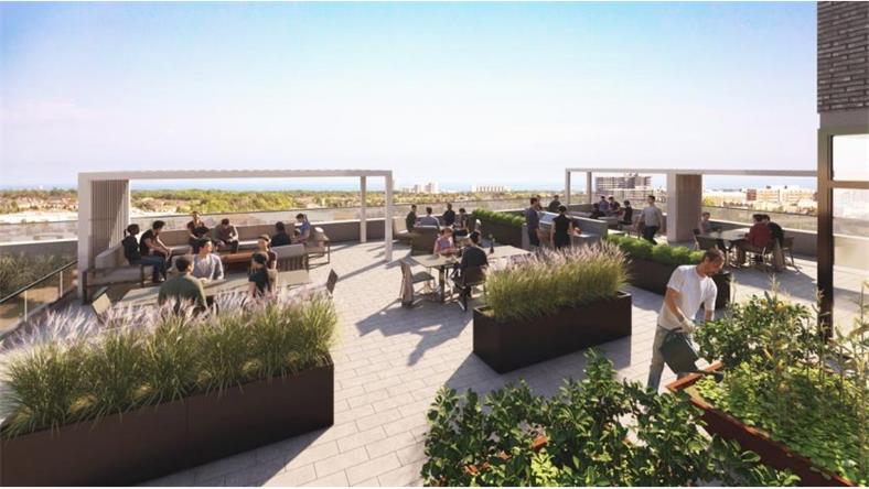 North Oak将提供许多便利设施,包括带有室内花园的办公休息室、会议室、游戏屋、宴会厅、健身中心和宠物房等。公寓也将开设可供烧烤、用餐和休息的室外露台。