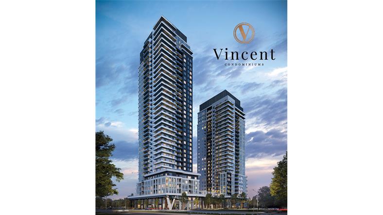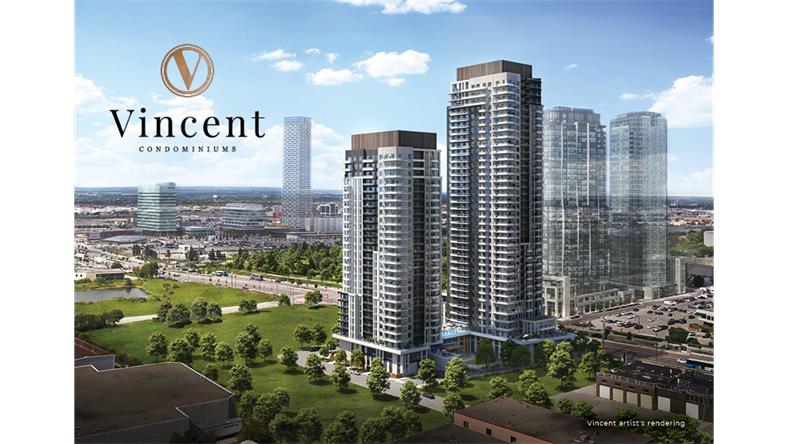 【楼盘名称】 Vincent Condos 【开发商】 Townwood Homes, Guglietti Brothers Investments, Rosehaven Homes 【地址】 2851 Highway 7 — Jane St. & Highway 7, Vaughan 【楼层】 北楼34层(现已发售),南楼27层(尚未开售) 【单元数量】 共766套,其中北楼447套,南楼319套 【单位户型】 1房—3房 【交房日期】 2026年1月 旺市黄金地段