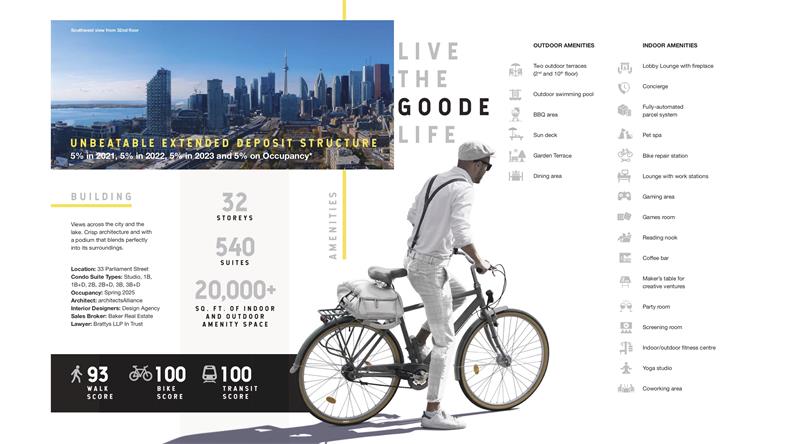 The Goode CONDOS The Goode Condos是由知名开发商 Graywood Developments推出的豪华公寓项目, 位于多伦多的Parliament St和Mill St的交界处附近, 紧邻多伦多历史悠久的古酿酒厂区,开车5分钟或乘坐公交25分钟即可抵达市中心办公区,最受欢迎的公园、沙滩、群岛、码头及其许多湖滨景点。