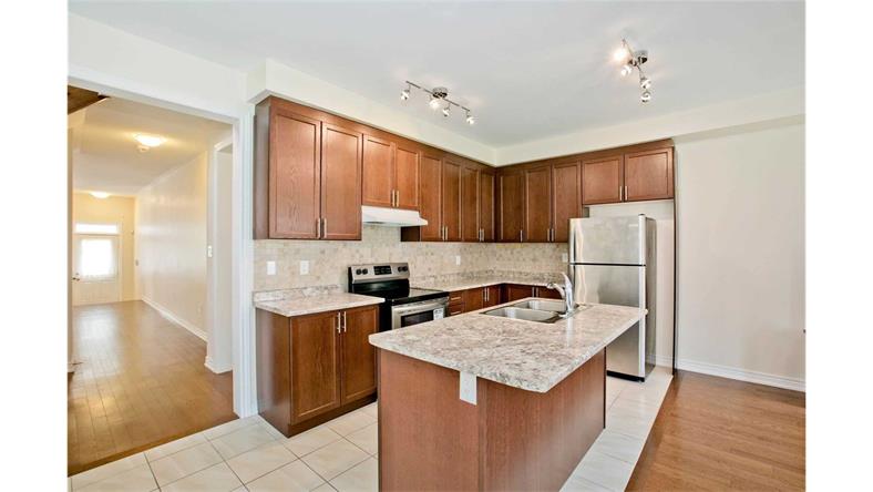 三年新精美两层四室单边镇屋,无管理费,面积2234平尺,宽敞明亮。一二楼9尺楼底,开放式布局,极为实用。新百叶窗。二楼新实木地板。现代厨房,后档板。橡木楼梯,大早餐区。近407,购物中心,Walmart,医院,银行,学校和公园。随时可入住。