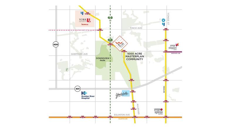 全新的WestLine Condos位于多伦多北约克最受青睐的Downsview,四周有最为便捷的TTC交通系统和高速公路。