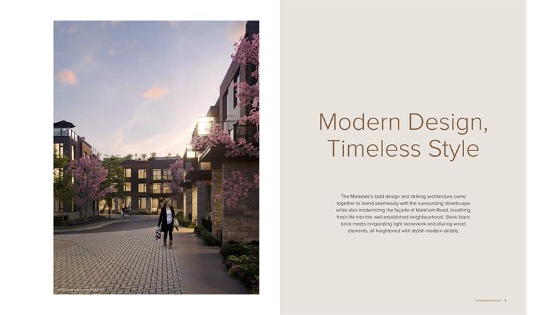 The Markdale拥有 147 套现代联排别墅,可俯瞰景观绿地。别墅建筑风格以时尚的黑砖外观、超大扇窗、私人阳台、屋顶露台和现代化细节设计为依托,与周围的街景完美融合。